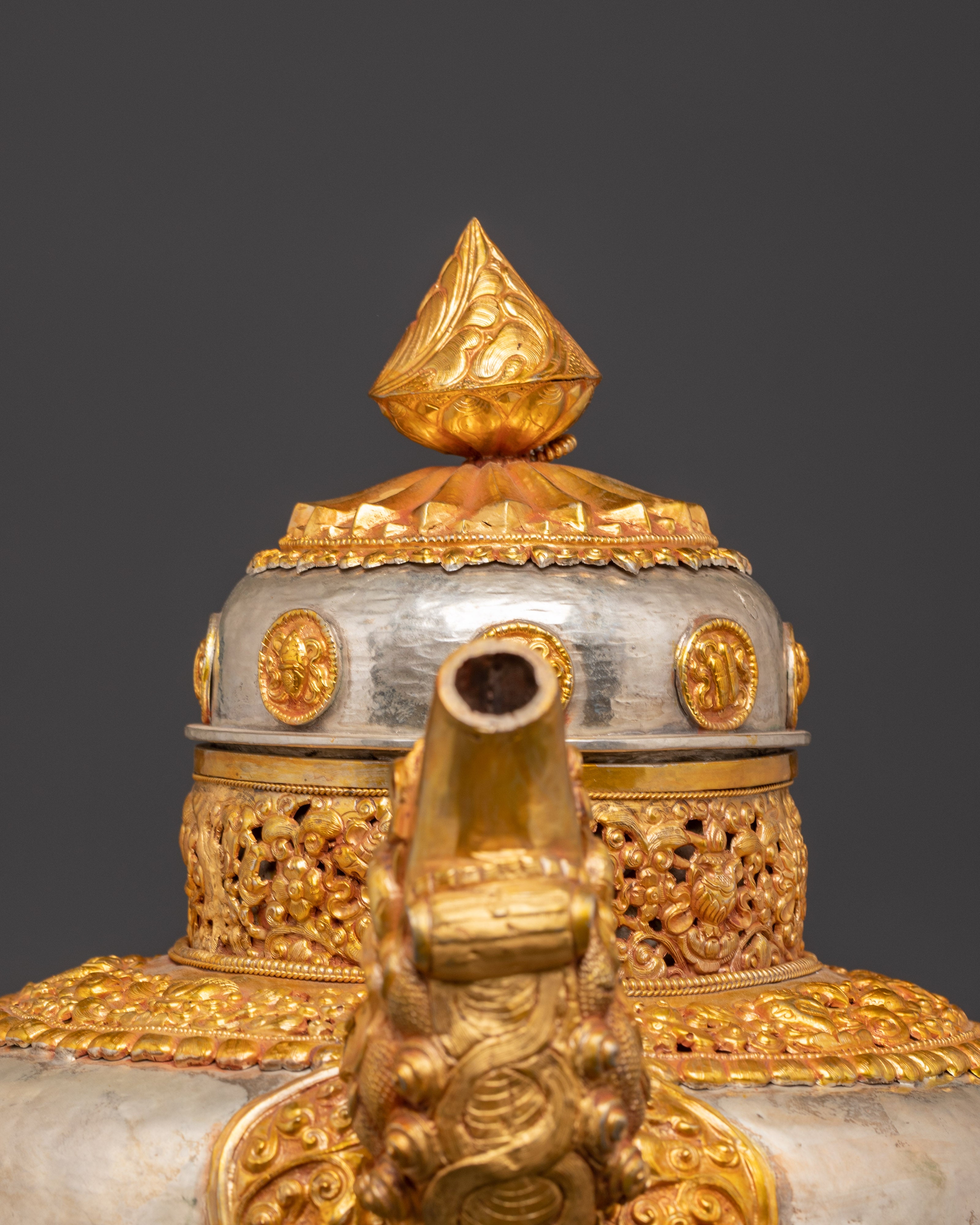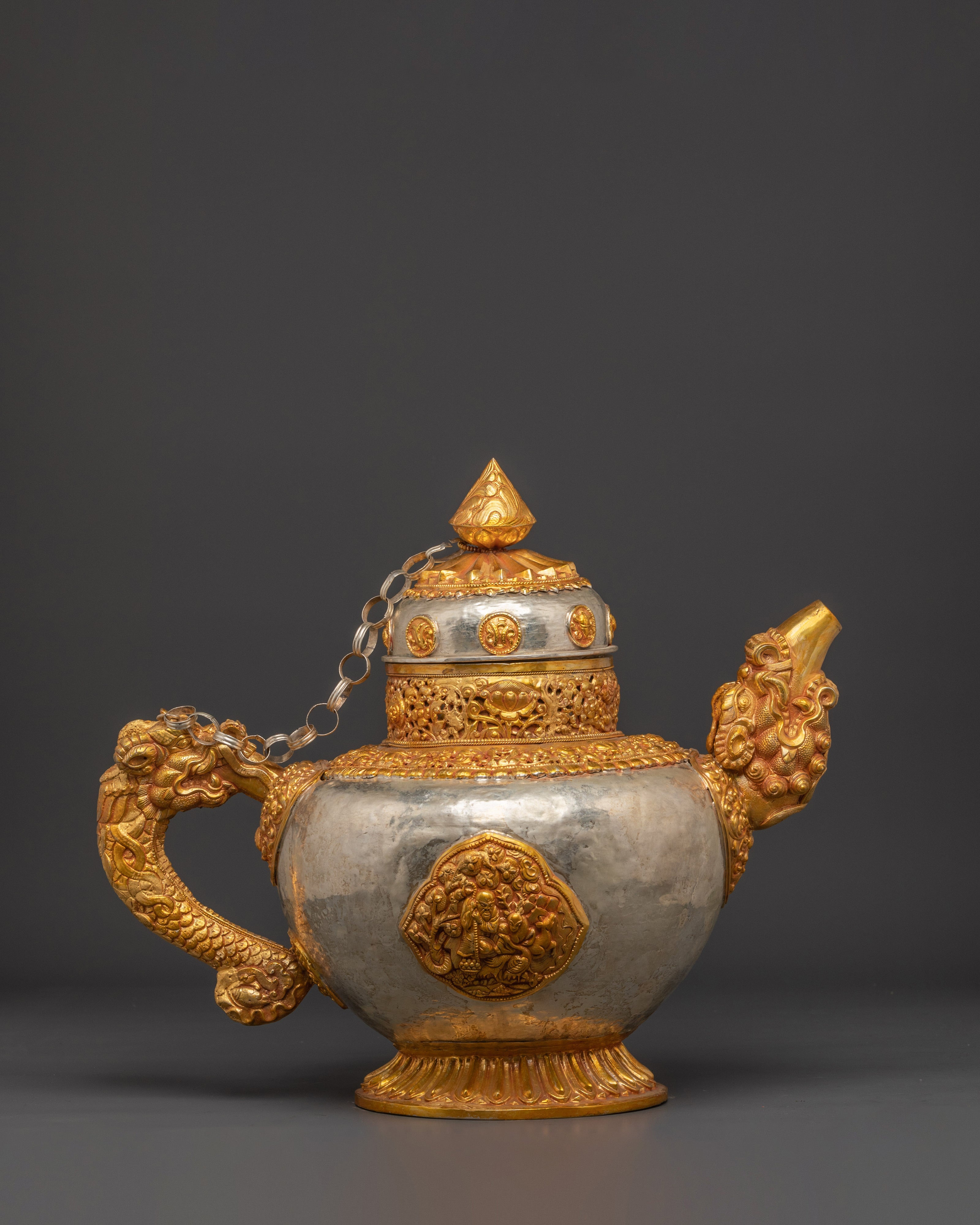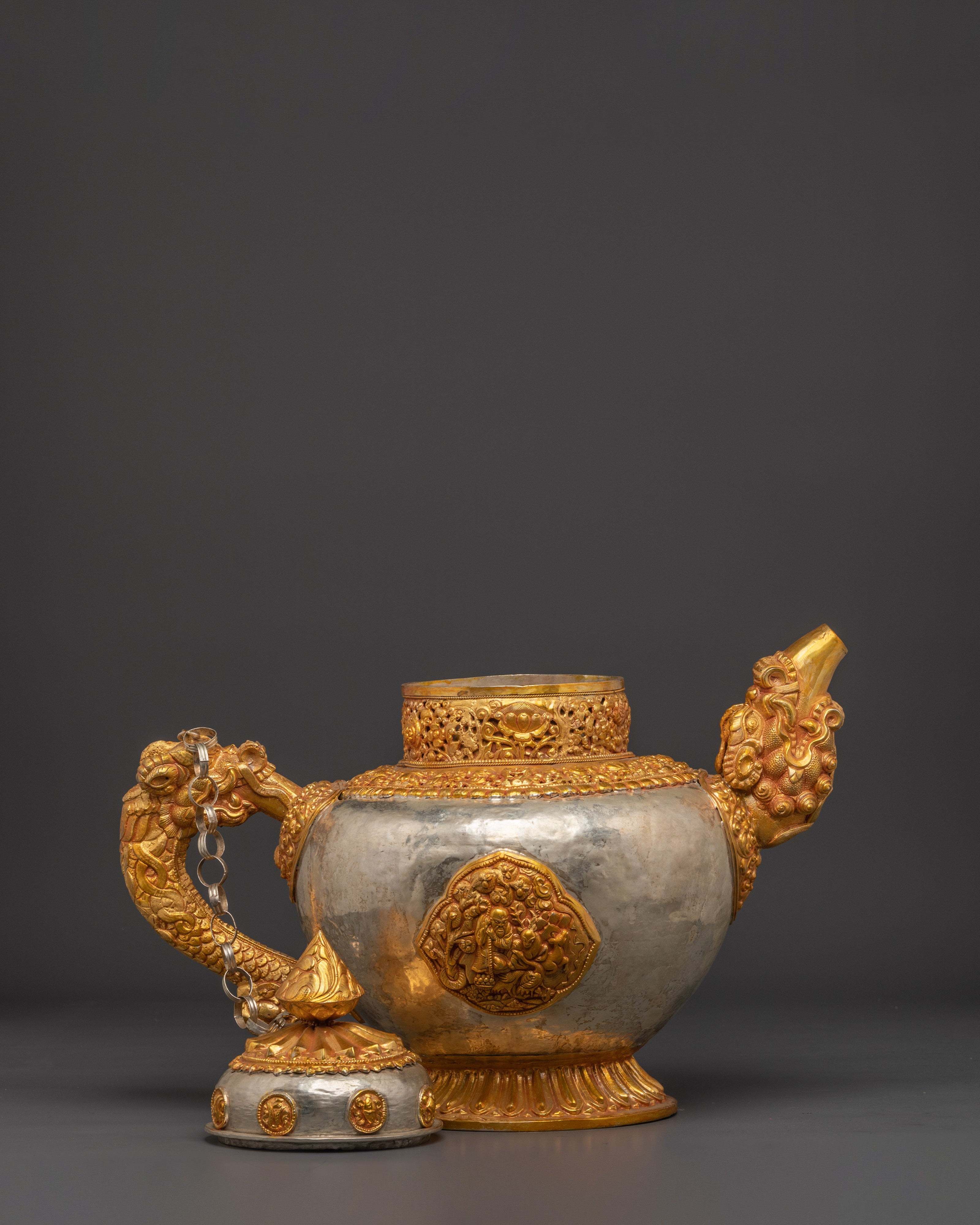 Expertly designed, this teapot is more than a serving piece—it’s a statement of artistic and spiritual significance. The dragon handle symbolizes strength and protection. The fine silver and gold plating reflect the skill and dedication of artisans, ensuring it is both a practical tool and a decorative heirloom. Ideal for collectors or those seeking a unique piece of cultural heritage, this teapot brings both beauty and purpose to your space.