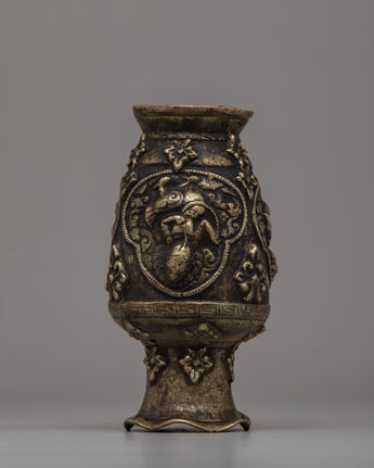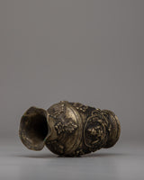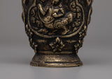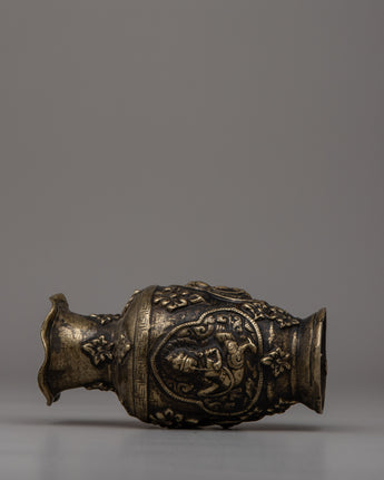 The antique finish highlights the brass's natural warmth, while the intricate Buddhist designs provide cultural and artistic significance. The vase, weighing 0.62 kg, is both carefully and aesthetically pleasing, making it an excellent addition to any décor, whether you want to create a relaxing atmosphere or simply admire fine art and craftsmanship. This vase serves a useful purpose while also telling a story of rich tradition and beauty, making it ideal for collectors and those who value meaningful design.