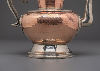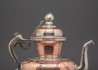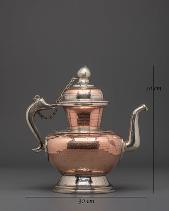 The intricate hammered designs and flowing handle highlight the artisan's talent. More than just a vessel, it embodies hospitality, history, and artistry, making it a valuable addition to any cultural or decorative collection. It's ideal for displaying on shelves, tables, or as part of a curated home design setting, adding elegance and a sense of cultural identity to your area.