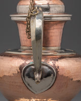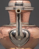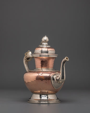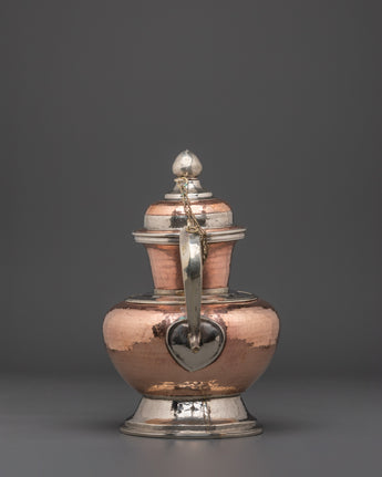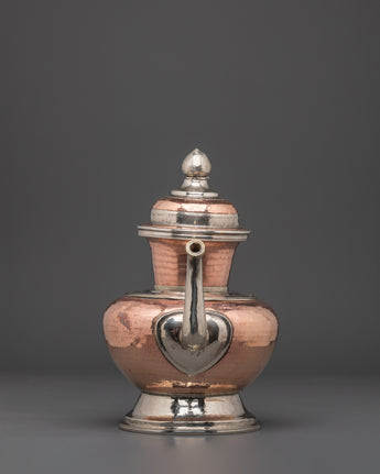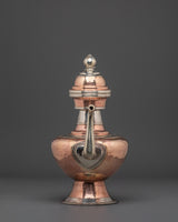 This Bhumba, made of copper and exquisitely plated in silver and gold, adds to the spiritual aura of temples, meditation rooms, and altar settings. Its presence enhances ritual practices by connecting people to the spiritual traditions of the Himalaya.