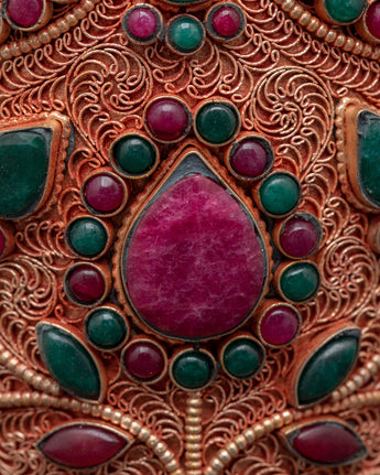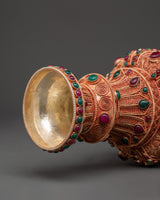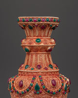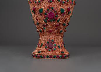 These elegant flower vases are expertly manufactured and weigh 1.11 kg each, totaling 2.20 kg, ensuring excellent quality. The rich blend of copper and multicolored stones not only provides visual appeal but also holds cultural significance, making it an ideal gift or heirloom. This vase set is perfect for those who appreciate unique, ethnic home decor. It seamlessly integrates craftsmanship and spirituality. Add this beautiful Handmade Flower Vase Set to your collection to make a decorative statement.