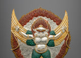 The Garuda, a mythical defender and symbol of freedom, is portrayed in an eager pose, wings spread wide and ready to tackle obstacles. Its keen gaze and fierce look symbolize attentiveness and strength, while the spread claws represent the deity's willingness to face negative. The dual-tone electroplating highlights the heavenly nature, with gold representing enlightenment and silver representing purity. Delicate acrylic accents provide life to the feathers and adornments, heightening the statue's dynamic presence. As both guardian and liberator, this Garuda sculpture acts as a reminder of the potential to conquer ignorance and soar into spiritual