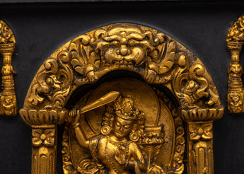 A remarkable work of art, the Handmade Tibetan Wall Hanging is painstakingly created from a mixture of fiber and resin. This one-of-a-kind wall hanging showcases the rich spiritual legacy and artistic traditions of Tibetan culture with its highly detailed images of many deities in its center. Every deity is brought to life with amazing accuracy and beauty because to the use of fiber and resin, which guarantees durability while also enabling exquisite, detailed craftsmanship.