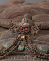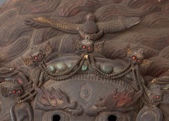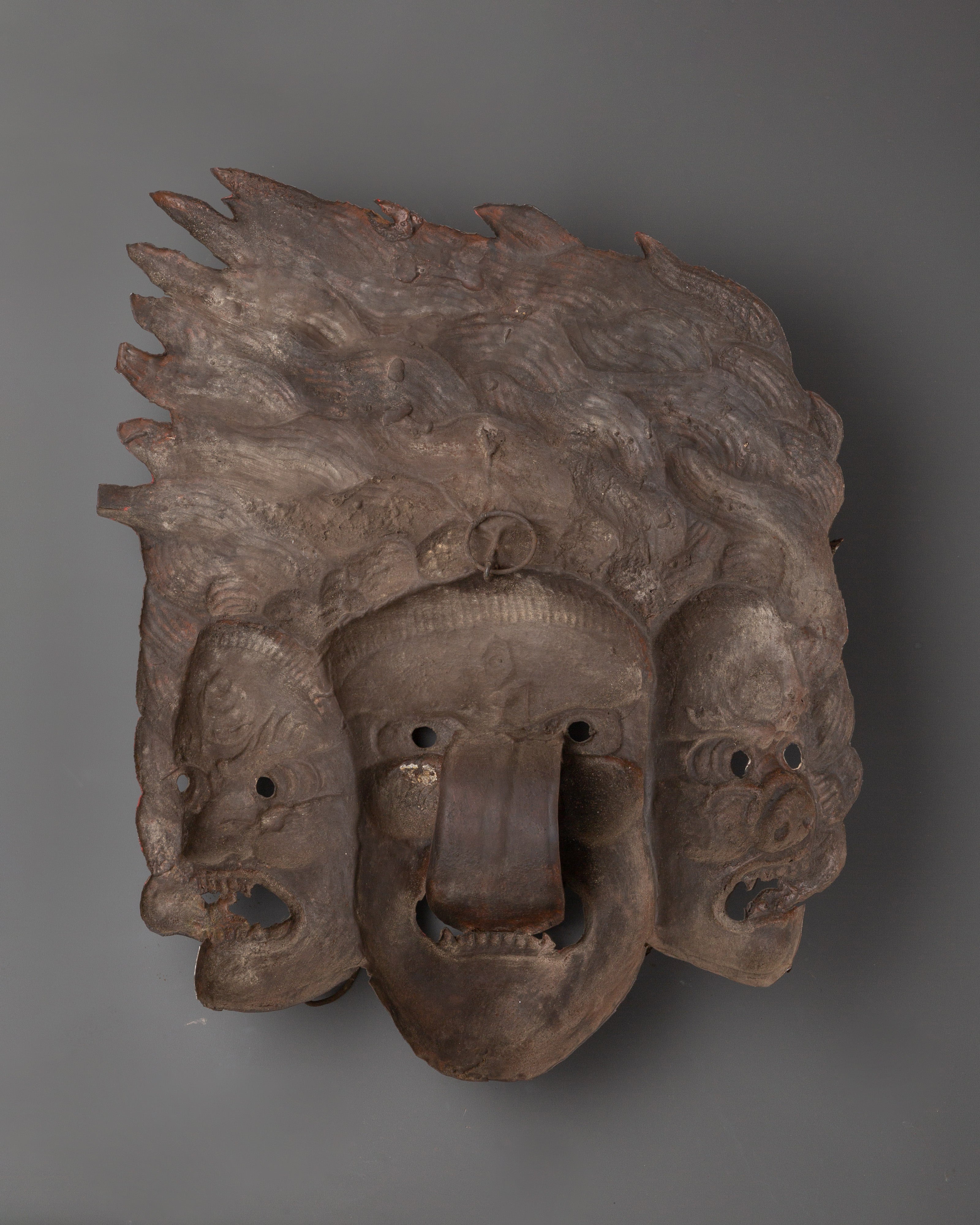 Crafted in iron with an antique finish, this wall hanging mask adds depth and character to living rooms, meditation spaces, galleries, and curated collections. Whether chosen for its cultural significance, artistic impact, or dramatic wall display, it introduces an element of heritage and storytelling that elevates any environment.