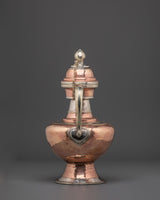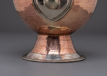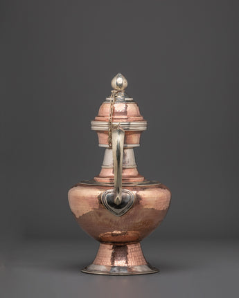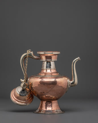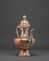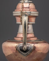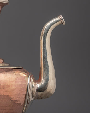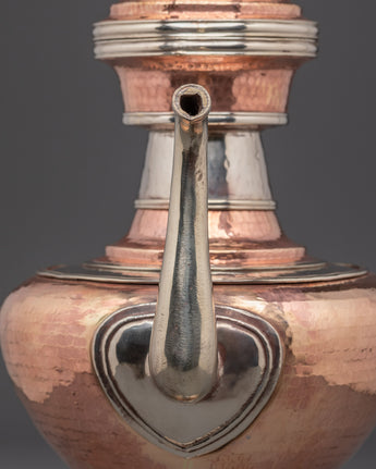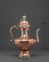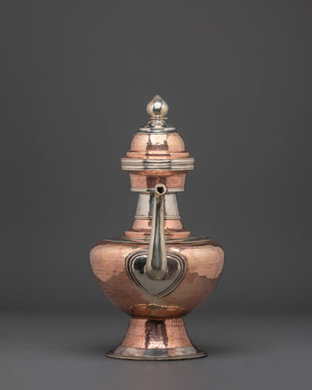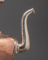 This teapot, made of copper and plated with silver, showcases the richness of its materials as well as the skill of traditional metalwork. It's a lovely piece that combines workmanship and legacy, making it ideal for kitchens, dining areas, and cultural exhibitions.