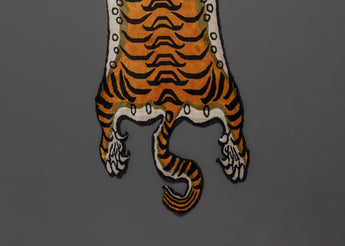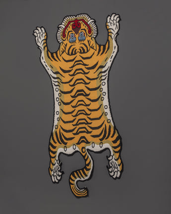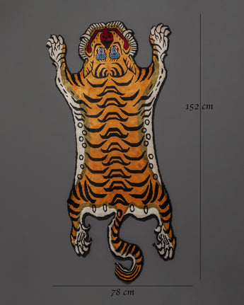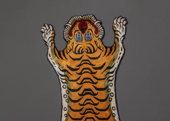 In Tibetan tradition, the tiger motif is revered as a sacred guardian. It symbolizes unconditional confidence, disciplined awareness, kindness, and modesty. The tiger is also connected with dominance over the forest and the air element, representing spiritual authority and protective energy. Many Tibetans believe that meditating on a tiger carpet not only shields from negativity but also supports deeper focus and enhances inner clarity. With its fierce yet graceful presence, this rug brings both inspiration and protection to any sacred space.