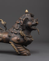 These lions are intricately sculpted with flowing manes, open mouths, and a poised attitude, representing vigilance and dynamic watchfulness. The sculptural features are inspired by centuries-old Himalayan themes representing fortitude, stability, and divine protection. Their expressive face and lofty posture represent spiritual dignity as well as the artistry of traditional craftsmanship.