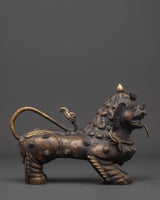 Himalayan Guardian Lion Sculptures Set | Sacred Bronze Protector Pair
