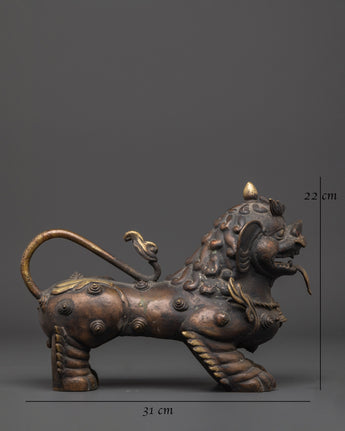 The Himalayan Guardian Lion Sculptures Set is a treasured emblem of power and holy protection in Himalayan and Tibetan cultures. These lion guardians are frequently seen guarding monasteries' gates, considered to protect sacred sanctuaries from harmful energies. This bronze set continues that tradition, making it a valuable addition to your meditation space or spiritual shrine.