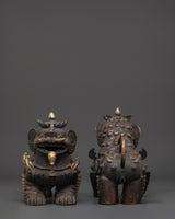 Himalayan Guardian Lion Sculptures Set | Spiritual Lions for Altar or Meditation Room