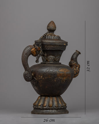 The Artisan Buddhist Iron Tea Pot is a finely handcrafted piece made from iron. This traditional teapot is skillfully crafted by artisans, taking into consideration both functionality and aesthetics. With a height of 32 cm, it offers ample space for brewing and serving tea. The design of the teapot reflects the artisan's attention to detail and their commitment to creating a visually appealing and functional piece. Whether used for personal enjoyment or as a decorative item, this Artisan Buddhist Iron Tea Pot is a testament to the rich tradition of tea culture and craftsmanship.
