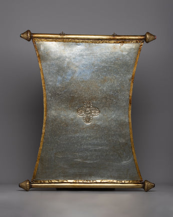 A stunning fusion of spiritual symbolism and handcrafted craftsmanship presents our Kalachakra Symbol Metal Thanka Wall Hanging. With a symphony of auspicious symbols around the famed Kalachakra, which is handcrafted with great care on a brass body, this stunning piece creates a harmonic tableau of heavenly energy and ancient wisdom.