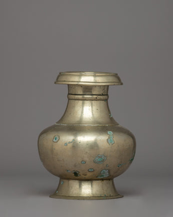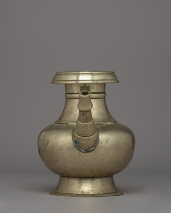 This bronze alloy Karuwa is commonly used in Tibetan Buddhist rituals, particularly for offering water or other sacred liquids during ceremonies. Bronze's durability ensures that it will stand the test of time, both functionally and aesthetically. The vessel's elegant design and sturdy construction suit ritual and daily offerings. This ritual vessel is not only a symbol of traditional craftsmanship, but it also has spiritual significance, as its purpose is deeply rooted in the practices of offering and purification.