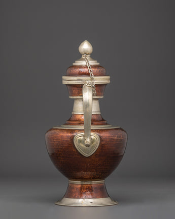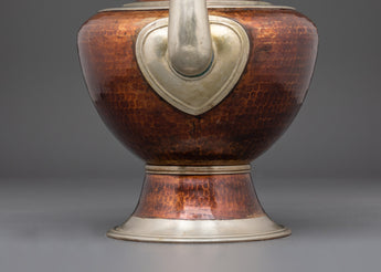 Experience the elegance of Tibetan craftsmanship with this handcrafted Tibetan Kettle, expertly made from copper and silver-plated for a refined, finish. Standing 35 cm tall, this kettle combines functionality with spiritual significance, perfect for brewing tea during rituals or as a striking decorative piece. Its traditional design captures the essence of Tibetan culture, making it a meaningful addition to meditation spaces, altars, or any setting focused on mindfulness and tranquility. Elevate your daily tea ritual and bring a touch of sacred artistry into your home with this exquisite kettle.