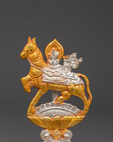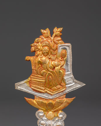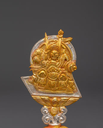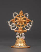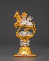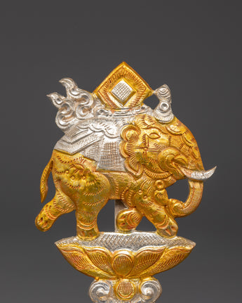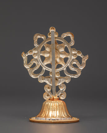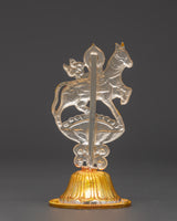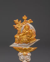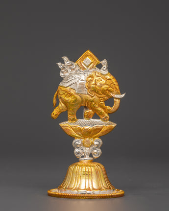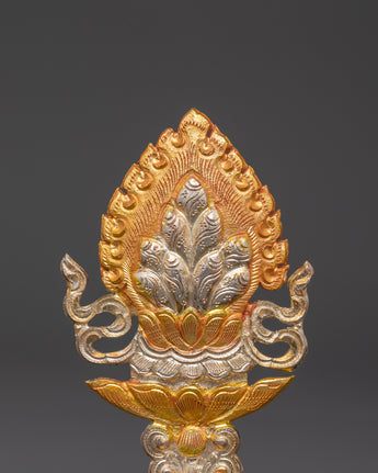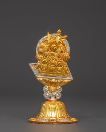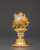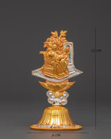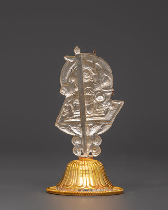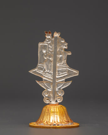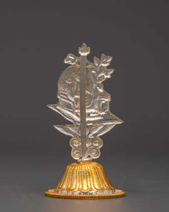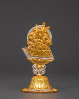This Tibetan King and Queen Symbol Set includes seven uniquely handmade symbols, each measuring 13cm tall, 9cm broad, with a 5cm base, and weighing 0.068kg each. The set weighs 0.45 kg in total. Each sign, made of copper and plated in electro-gold and silver, demonstrates royal and spiritual strength while merging traditional Tibetan workmanship with a modern electroplating finish. These exquisite sculptures are ideal for altars, spiritual collections, and ceremonial settings.