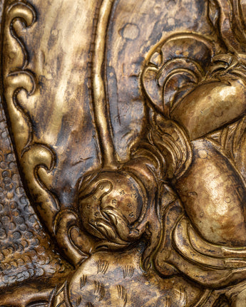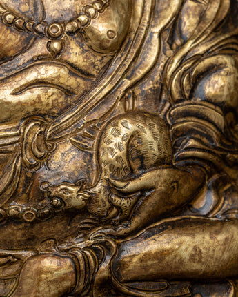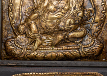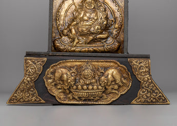 The Buddhist Sculpture of Kubera portrays the lord of wealth and the savior of the north. The blessing of Dzambala and the value of his practice are universal. It assists us in minimizing or reducing all misfortunes and obstacles and growing all good fortune and happiness. Kubera's mission from the gods in Hinduism was to make worshippers wealthy. This gold-gilded Dzambhala statue is excellent for Vajrayana practice.