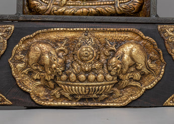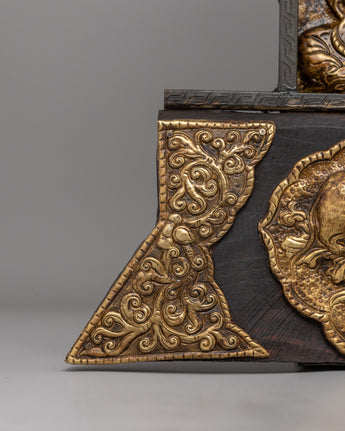 This Kuber statue, weighing 3.59kg, is creatively constructed to inspire spiritual harmony and success. The brass workmanship and elaborate carvings highlight Kuber's rich Tibetan origin and cultural significance in Buddhist traditions. This statue is ideal for spiritual practitioners or collectors, as it enhances meditation rooms and adds an atmosphere of happiness and abundance to any house or sacred location.