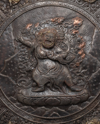 Large Metal Wall Hanging of Vajrapani | Tibetan Buddhist Protector Deity of Dharma & Devotees
