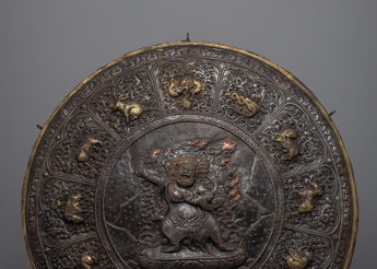 The Large Metal Wall Hanging of Vajrapani is perfect for collectors, art supporters, and spiritual practitioners because it is a beautiful decorative and potent spiritual symbol. This wall hanging inspires meditation and reverence, whether placed in a meditation area, on a holy shrine, or as a classy accent in any setting. Its deep spiritual importance and artistic beauty elevate any setting, making it a treasured addition to any collection or sacred space. This item is more than just a pretty decoration; it's a significant relic representing excellent design and profound spiritual values.