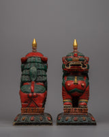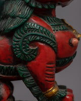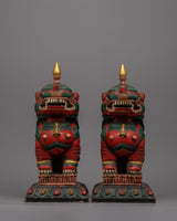 Presenting the Lion king Set Statue, an amazing handcrafted set that captures the imposing essence of the jungle ruler. This gorgeous set is 23 cm high and 24.5 cm wide, and it is painstakingly hand-painted on wood. The ensemble weighs 4.178 kg altogether, with each statue weighing 2.100 kg.
