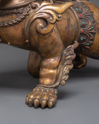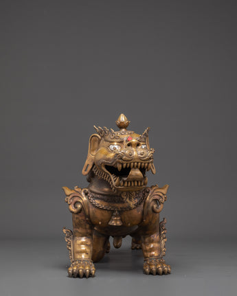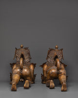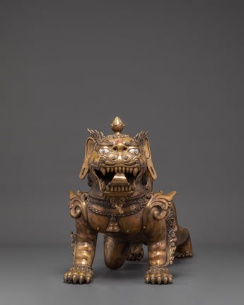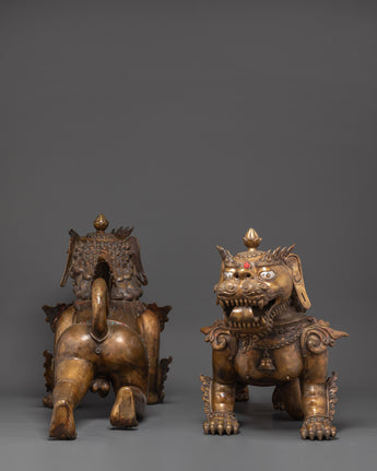 This Lion Set for Decor is a powerful representation of strength, protection, and spiritual harmony. Handcrafted from a blend of copper, bronze, and brass, these guardian lions radiate an aura of authority and divine presence. Traditionally placed at the entrance of temples, monasteries, and homes, lion statues are revered in Buddhist culture as protectors of dharma and symbols of fearlessness. With their detailed craftsmanship and bold presence, this set enhances both spiritual practice and interior décor.