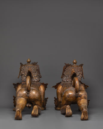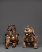 Owning this Lion Set for Decor offers the advantage of combining sacred symbolism with artistry these handcrafted Buddhist guardian lions not only elevate your home or shrine with elegance, but also bring spiritual protection, strength, and prosperity. Made from copper, bronze, and brass, the statues are believed to ward off negativity while inviting courage and positive energy, making them a meaningful investment for both spiritual practice and interior design.