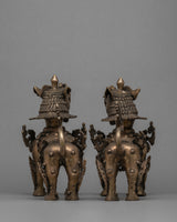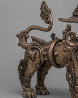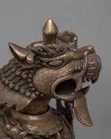 This lion set is a stunning piece of art, handcrafted by skilled artisans from high-quality material with silver plating. The set consists of a majestic lion figure with intricate details, a beautifully crafted mane, and a matching base that enhances its regal appearance. The body of the lion has a rich and lustrous finish that adds to its already impressive beauty and makes it an eye-catching focal point in any room. Each piece in this set is meticulously handcrafted with attention to every detail, making it a one-of-a-kind work of art.