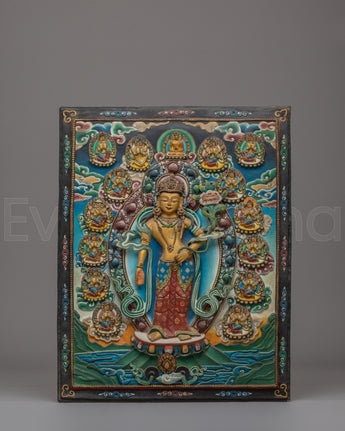 Placing this Lokeshwor wall hanging in your altar space encourages mindfulness, harmony, and compassionate intention. It serves as a visual reminder of the Bodhisattva vow to assist all beings and cultivate spiritual awareness. Whether displayed in a meditation space or sacred room, this Tibetan Buddhist wall sculpture invites blessing, balance, and elevated energy into your environment