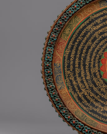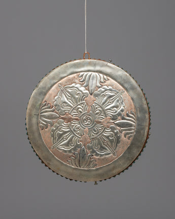 Intricate geometric designs known as mandalas are very spiritual in many cultures, including Tibetan Buddhism. They stand for the cosmos, completeness, and interdependence of all things. This copper mandala, when hung on a wall, invites viewers to reflect on the mysteries of life and their place in the cosmic order by providing a visual depiction of the holy cosmos.
