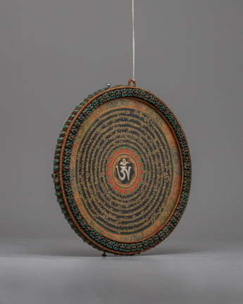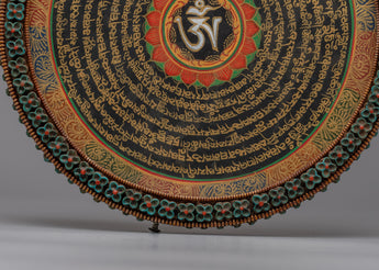 A potent center for reflection and meditation, the Copper Mandala Mantra Wall Hanging can be found in homes, meditation areas, or hallowed temples. Its dazzling presence serves as a powerful reminder of the everlasting truths of existence and the interdependence of all beings, in addition to enhancing the visual appeal of any surroundings.