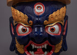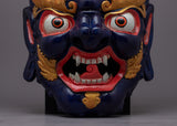 Bhairva is a Hindu deity associated with destruction and protection. He is often depicted as a fierce and powerful figure with fierce expressions and prominent fangs. In Tibetan Buddhism, Bhairva is considered a protector deity and is revered for his ability to conquer negative forces and bring blessings to his devotees. He is also associated with the Buddhist principle of non-attachment, as he is said to have transcended all attachment to worldly desires and emotions. Bhairva is considered a deity of great power and is often invoked for protection and overcoming life obstacles. He is often depicted in Tibetan Buddhist art, such as statues and masks, and is a popular subject of devotion and meditation for many Buddhists.