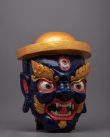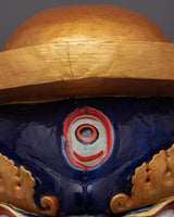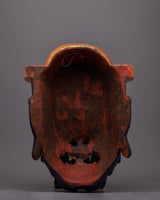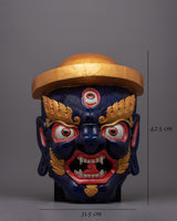 A remarkable work of art, the Fierce Mask is painstakingly crafted by hand on a wooden body. This mask, which stands 42.5 cm tall, is a magnificent example of traditional artisans' extraordinary talent and workmanship. The hardwood framework ensures the lifespan of the mask and protects its fine details by offering a strong and long-lasting base. The intense emotion of the mask is brought to life by applying acrylic paint, which also adds vivid colors and intricate details.