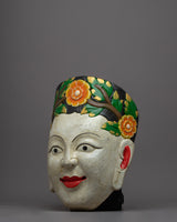 A sense of peace and reflection is evoked by the monk's face's tiny details, which are skillfully portrayed through expressive brushstrokes and painstaking carving. The delicate hues and textures added by each stroke of acrylic paint enhance the mask's calm appearance on any wall.