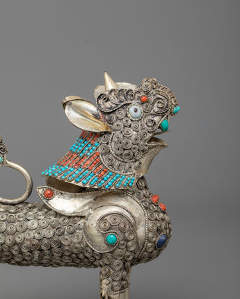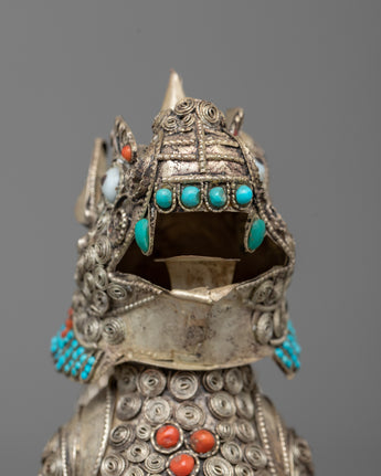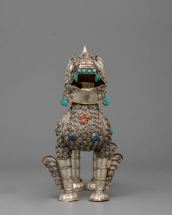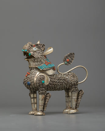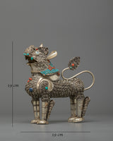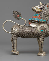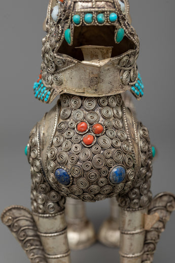 With this gorgeous Outdoor Lion Statue Set, which is painstakingly handcrafted on white metal and embellished with artificial coral and turquoise stones, you can enhance the grandeur of your outdoor area. The exquisite filigree work on each of the magnificent statues in this set lends an air of refinement and extravagance to their regal presence.