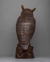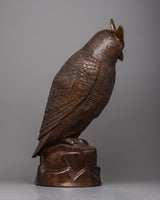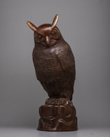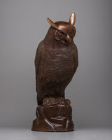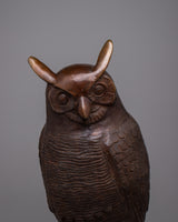 This exquisite owl statue is more than just a decorative item; it's a declaration of craftsmanship and respect for the natural world. It is a center point in any area because of its realistic depiction and meticulous detailing, which reflect the essence of the owl's magnificent presence. Displayed in a living room, on a patio, or in a garden, the Oxidized Copper Owl Statue evokes respect and appreciation for its ageless beauty and skillful craftsmanship.
