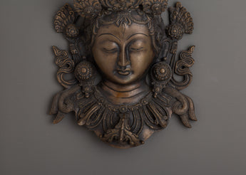 Oxidized Brass Green Tara Wall Hanging | Buddhist Decor, Divine Feminine Sculpture