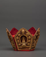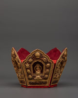 Oxidized Copper Tibetan Crown with 5 Dhyani Buddhas | Electro Gold Plated Headdress