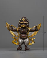 This standing Garuda figure, which is 0.29 kg in weight and is 22 cm in height and 22.5 cm in breadth, is meant to instill safety and tranquility in any area it graces. It is the perfect piece for a home office or meditation area because of its artistic beauty and spiritual importance.