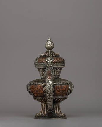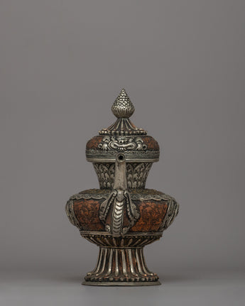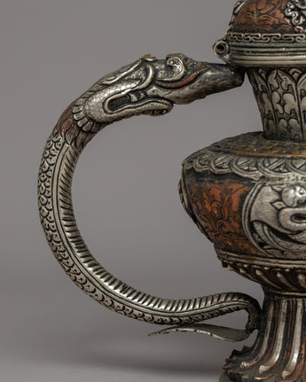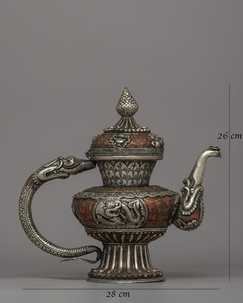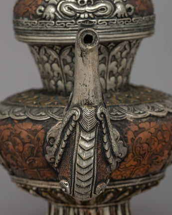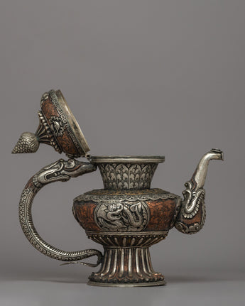 Religious Tibetan Tea Pot | A Sacred Silver-Plated Offering Vessel