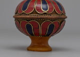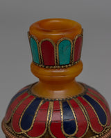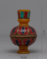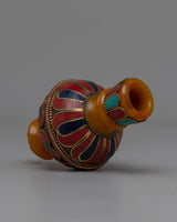 This exquisite vase is handcrafted with precision and features artificial stones such as turquoise, lapis lazuli, and coral, which are intricately inlaid to enhance its aesthetic appeal. Each stone has its symbolic significance, which adds depth and meaning to your spiritual practice.