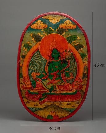 Green Tara Painted Wall Hanging | Tibetan Goddess of Compassion