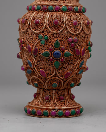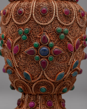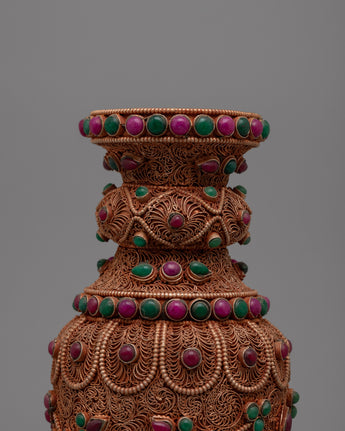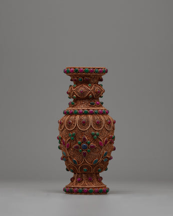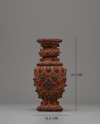 The Small Flower Vase Set exemplifies elegance and functionality. These vases, which are precision-crafted on copper bodies and decorated with silver plating, have a timeless charm that will complement any living area. Their complex design and meticulous details, along with the glittering allure of the silver plating, result in a fascinating visual show that catches the eye immediately.