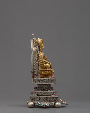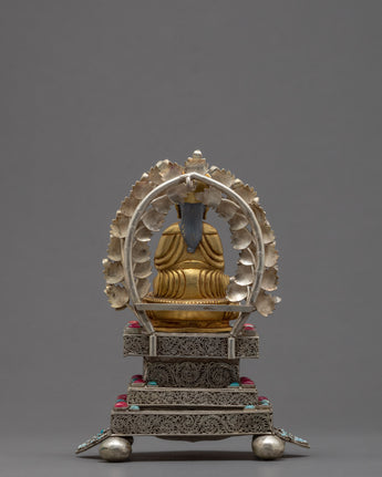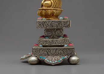 Our folding statue display stand or throne is used to place idol sculptures on your Pooja shrine or in your house. It comprises 100% copper with seku workmanship and medium-quality semi-precious stones. This is a present excellent idea for spiritual practitioners and your home altar.