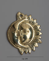 This gorgeous Sun and Moon Decor is skillfully created from brass, highlighting the shine of the metal as well as the craftsmen's expertise. The design incorporates a beautiful combination of the sun and moon, representing the cosmic balance and harmony between light and darkness, day and night. The meticulous detailing highlights the various patterns and textures, providing a visually appealing presentation. Brass's warm golden color gives a sense of refinement and shines in any area. This handcrafted Sun and Moon Decor serve as a lovely reminder of celestial powers and the interconnectivity of the cosmos.
