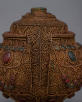 Tibetan Tea Pot for Sale | 24K Gold Plated Buddhist Pot