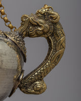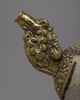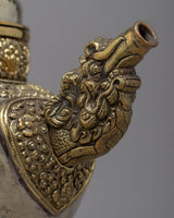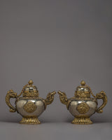 Carefully fashioned from white metal and brass, our Tibetan Tea Pot Set is a stunning example of traditional creativity. With a combined weight of 4.512 kg, this set includes two magnificent pieces that are expertly created to offer a touch of brilliance to any area. Their exquisite workmanship and graceful presence make them attractive additions to any home decor.