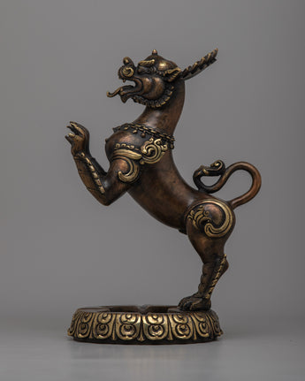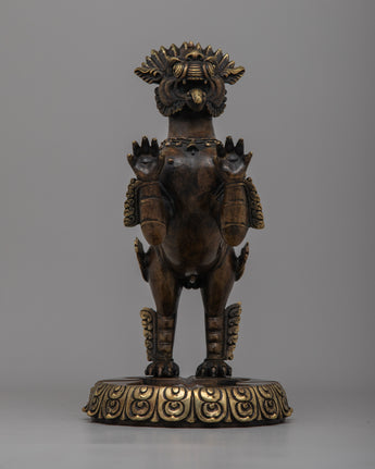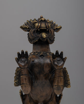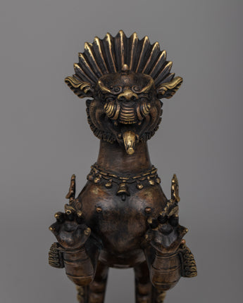 These Temple Lion Statues, weighing a total of 2.60 kg, are a concrete illustration of the holy connection between the divine and the material world. Usually built at the entrances of temples, monasteries, or other places of worship, they stand for the Dharma's protection and the teachings' preservation. They serve as a reminder of the constant watchfulness needed to preserve spiritual truths and the values of virtue and righteousness as guardians of the threshold.