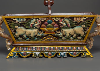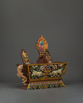The Tibetan Buddhist Chemar Box | Handpainted Wooden Offering Box