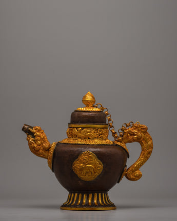 Tibetan Buddhist Tea Pot | Handcrafted Copper Teapot with Gold and Silver Plating