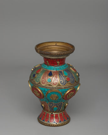 Tibetan Flower Vase with Brass | A Sacred Decorative Masterpiece